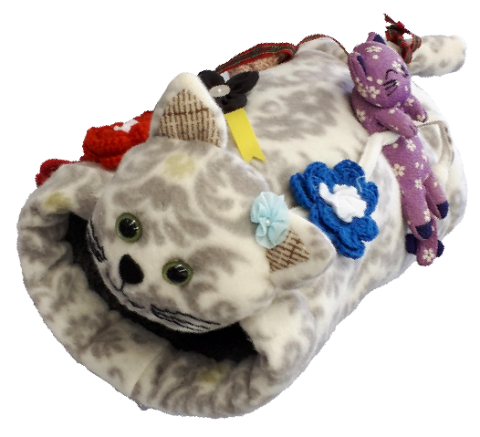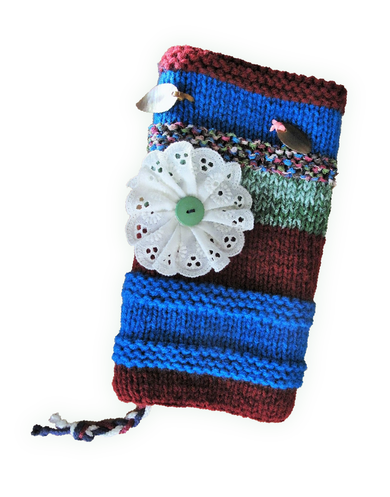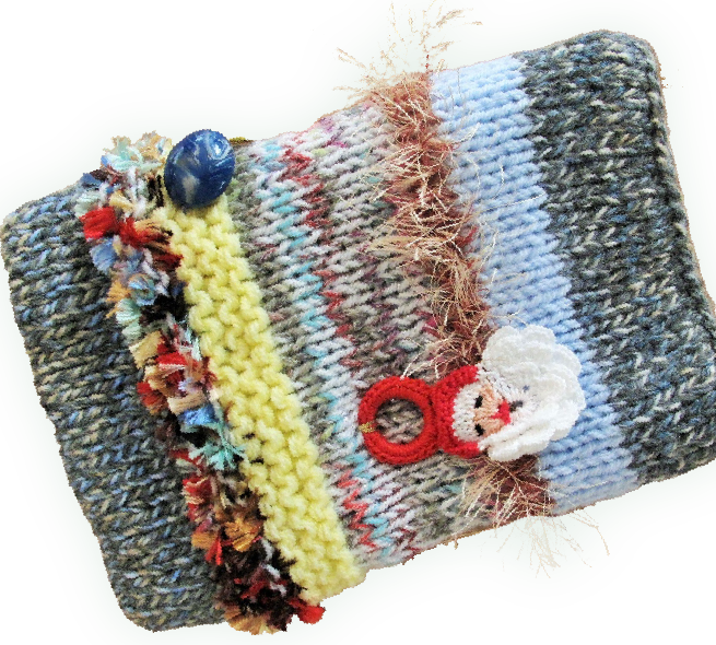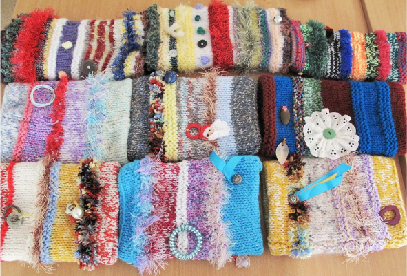 イギリスでは、認知症の人が毛糸で編まれたカラフルな筒状のニット製品を使っている姿を見かけます。これらは「Twiddle Muff」といわれ、内側にはリボンやボタンなどのアクセサリーが縫い付けられています。Twiddleとは「(手で)いじる」という意味で、認知症の人がアクセサリーを触わることで安心感が得られるそうです。製作しているのはボランティアグループや編み物が趣味の主婦たちで、手作りで完成させたものを地元の病院や高齢者施設にプレゼントしています。