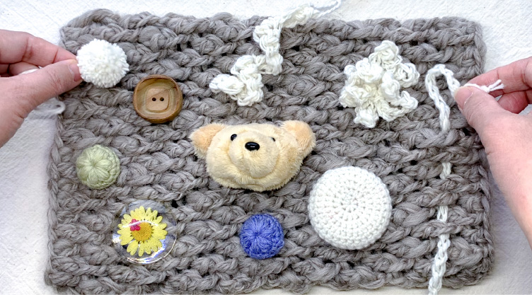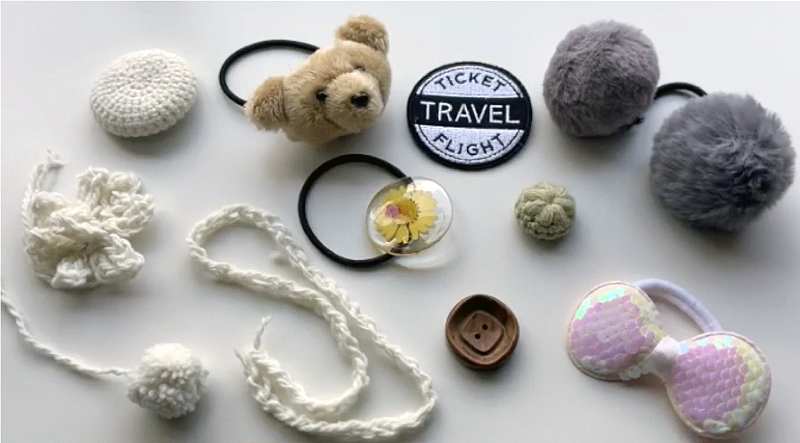 完成したマフの内側や外側に縫い付ける飾りも用意します。